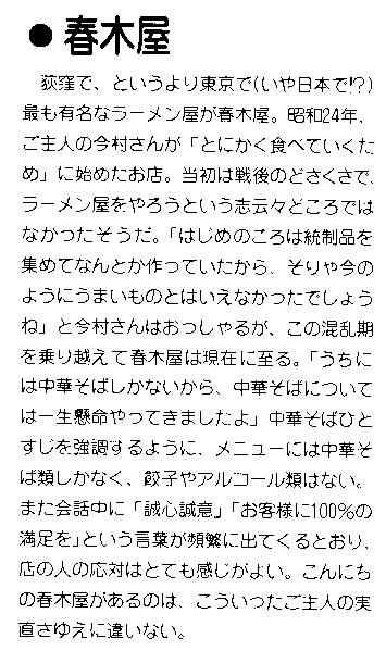 Harukiya is one of the most famous ra-men restaurant in Tokyo, not only in ogikubo area. Usually, the soup of ra-men is made with the bone of pig or chicken. Harukiya use dried fish also. It add unique taste to Harukiya's ra-men.